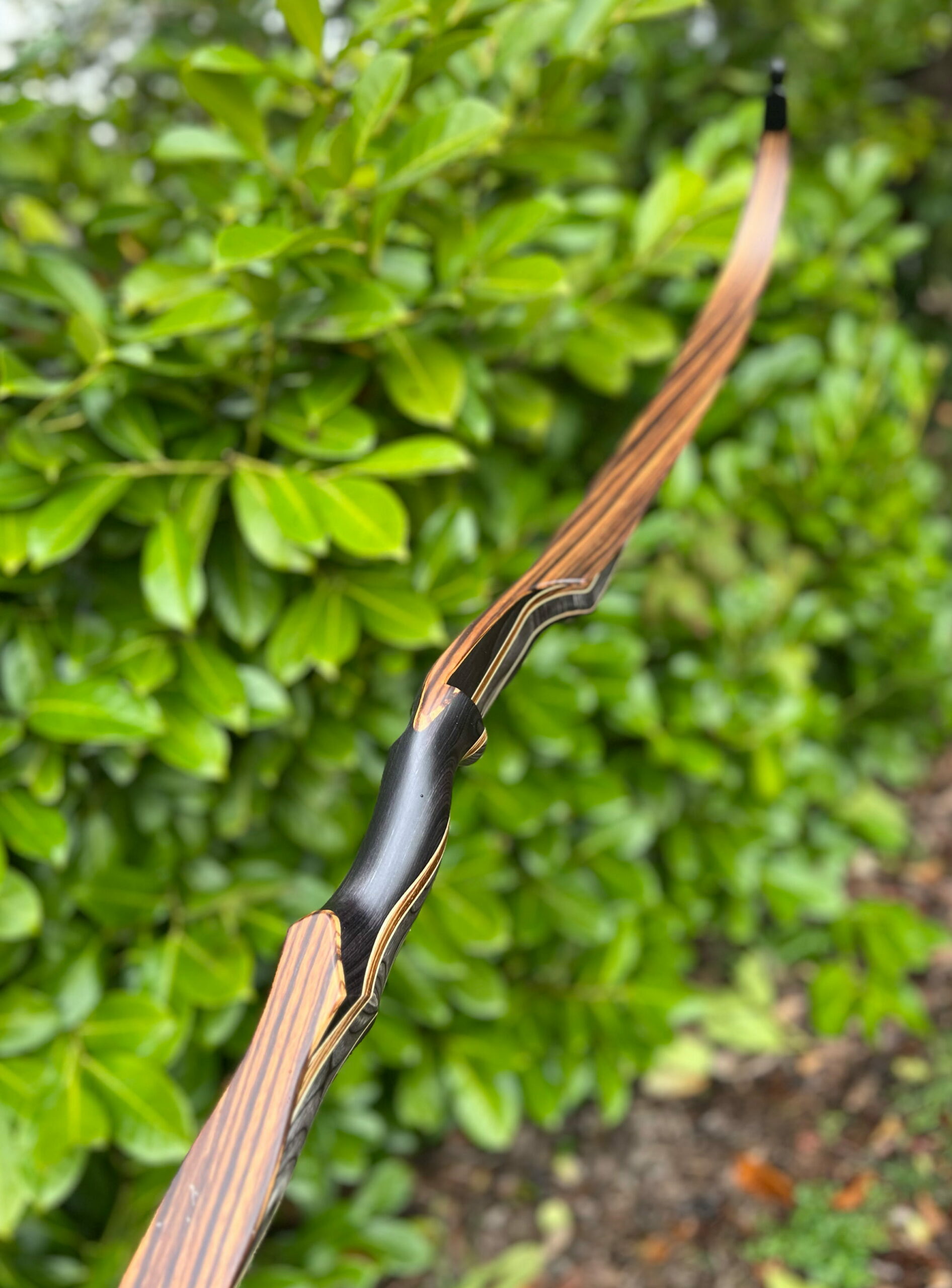(SOLD) #25152 Rare Custom Zebra Wood / Clear Glass Black Mamba ELITE RH 45# (58" AMO) 10/10 BRAND NEW (SOLD OUT)